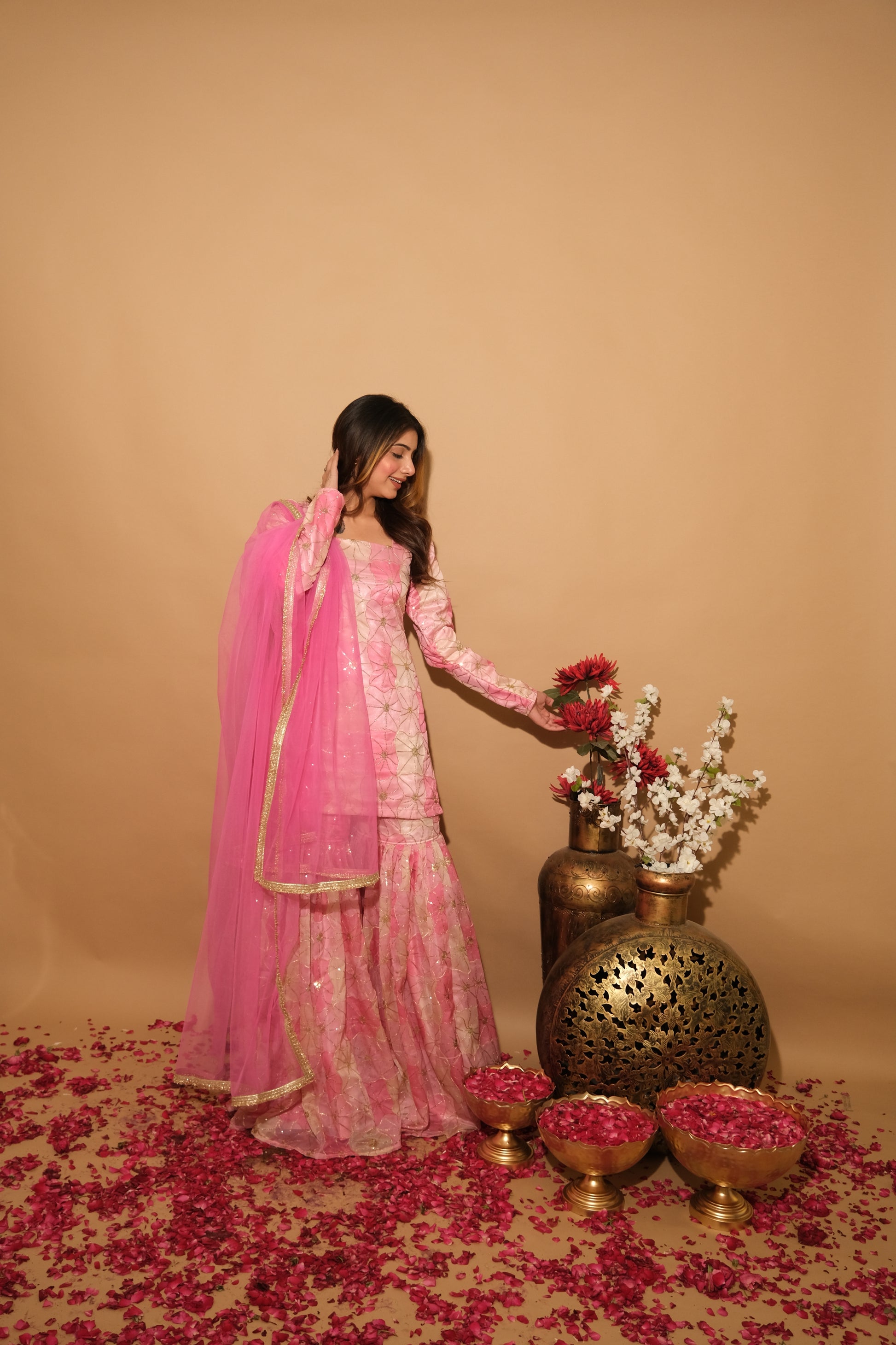Inspired by nature’s palette, Naureya reflects the colors of leaves and sunlight. This ensemble’s earthy hues and organic textures make it ideal for daytime festivities and cultural ceremonies