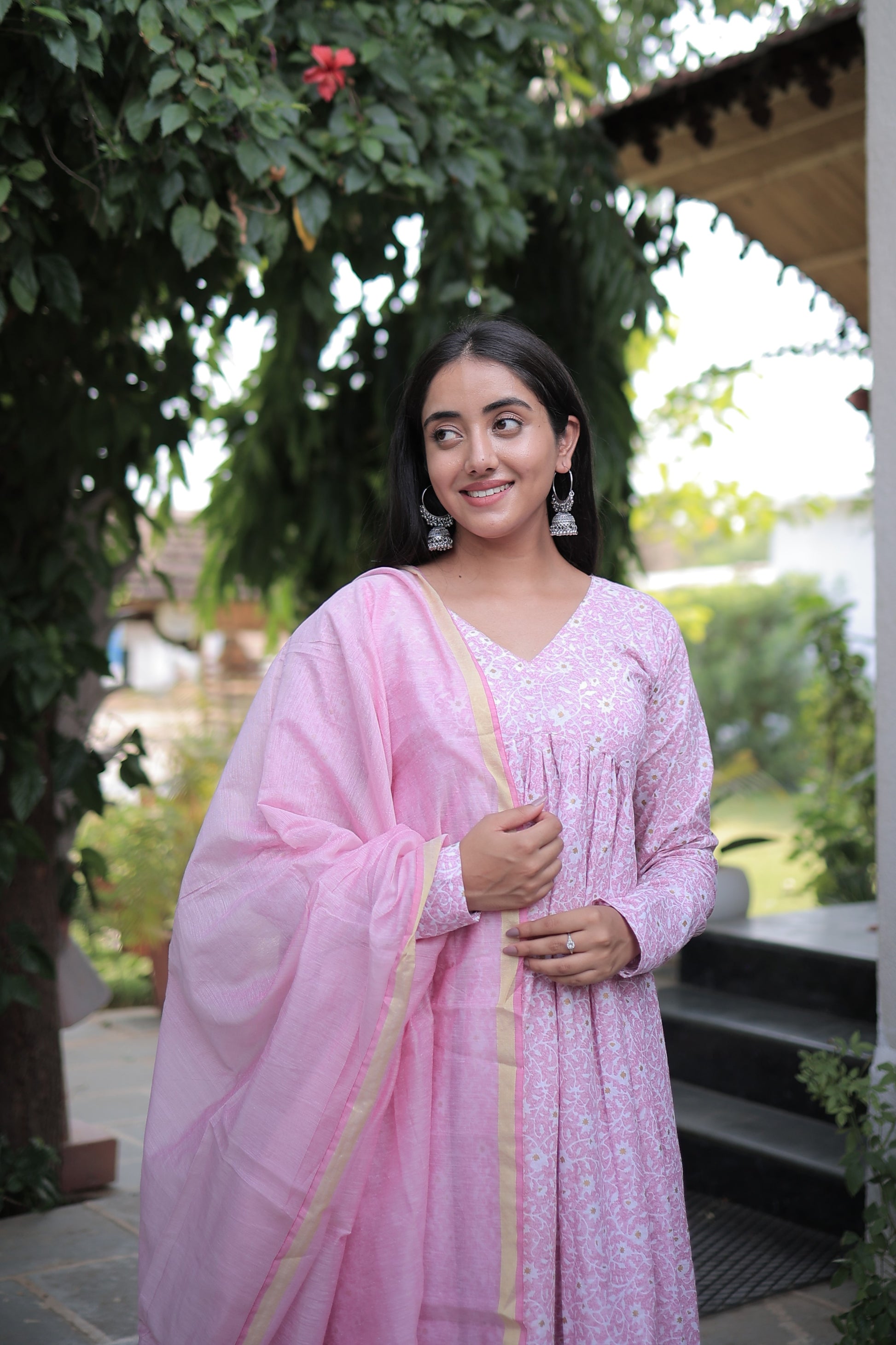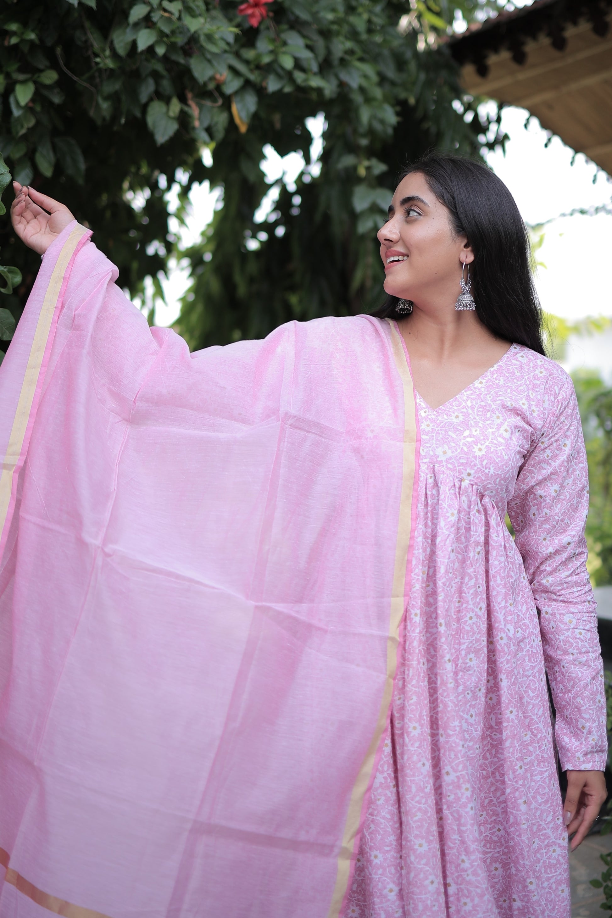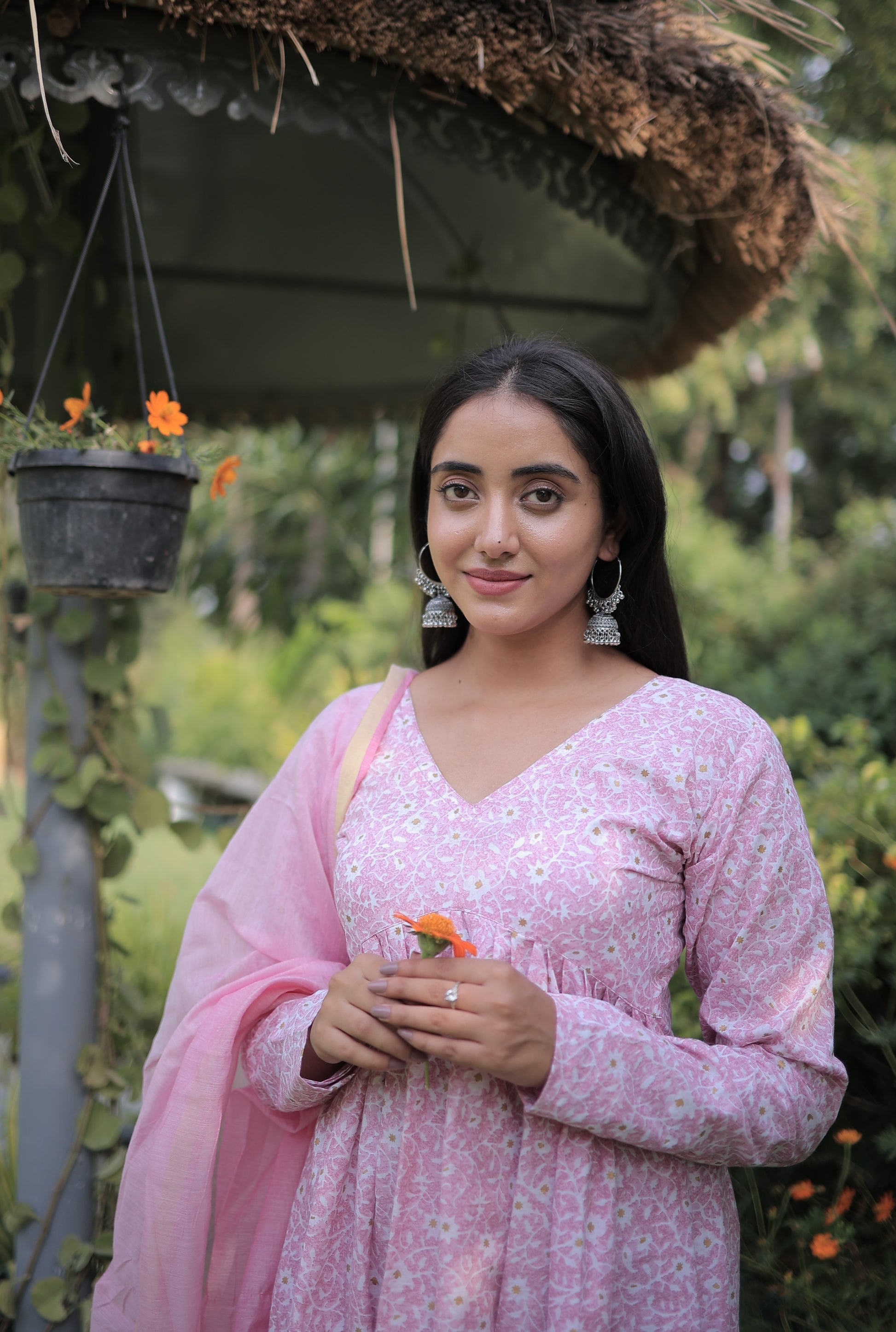 Effortlessly chic and beautifully crafted, our NAZAKAT suit set is a must-have for any fashion-forward wardrobe. Made from soft cotton in a stunning pink color, this ethnic wear features delicate white floral details that add a touch of femininity. Embrace your inner style with this playful and elegant piece!