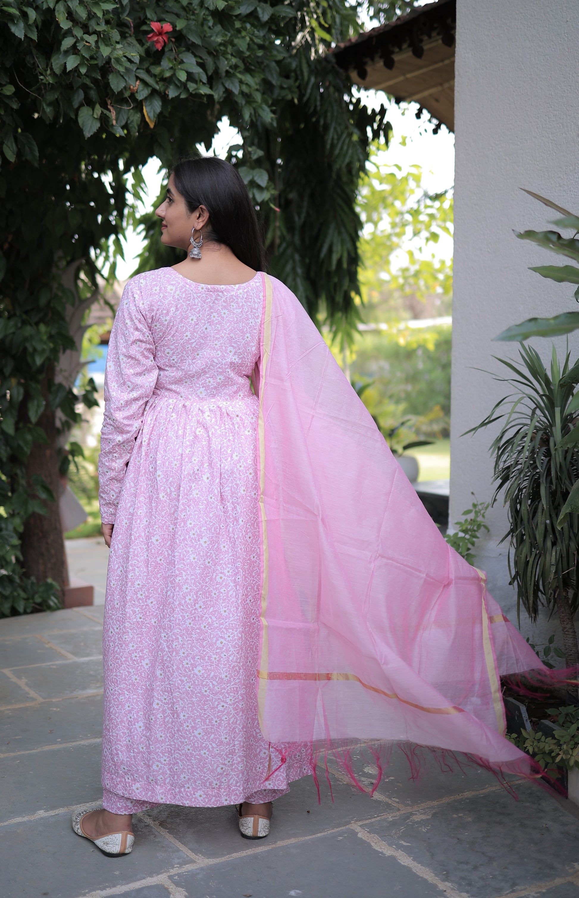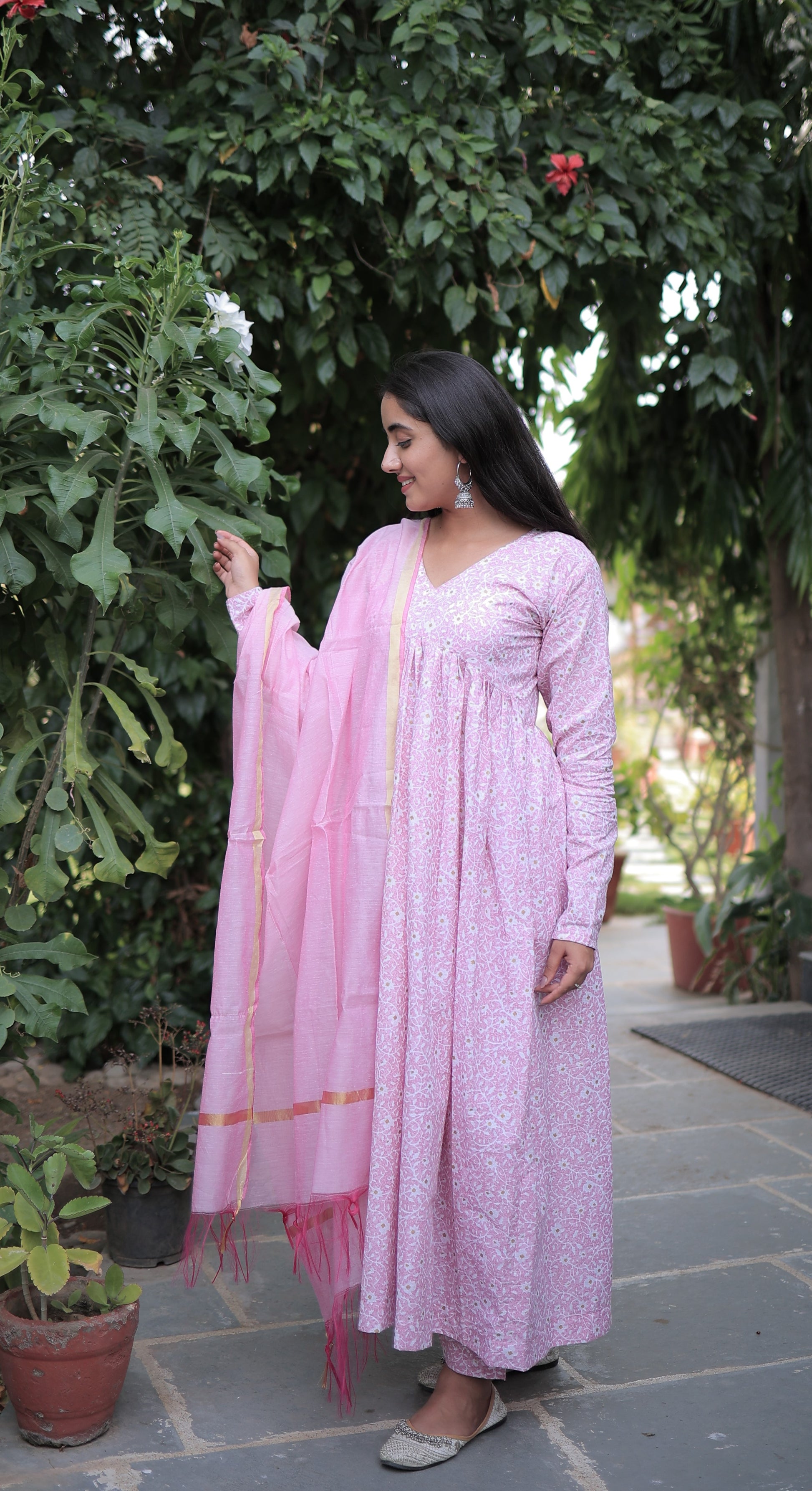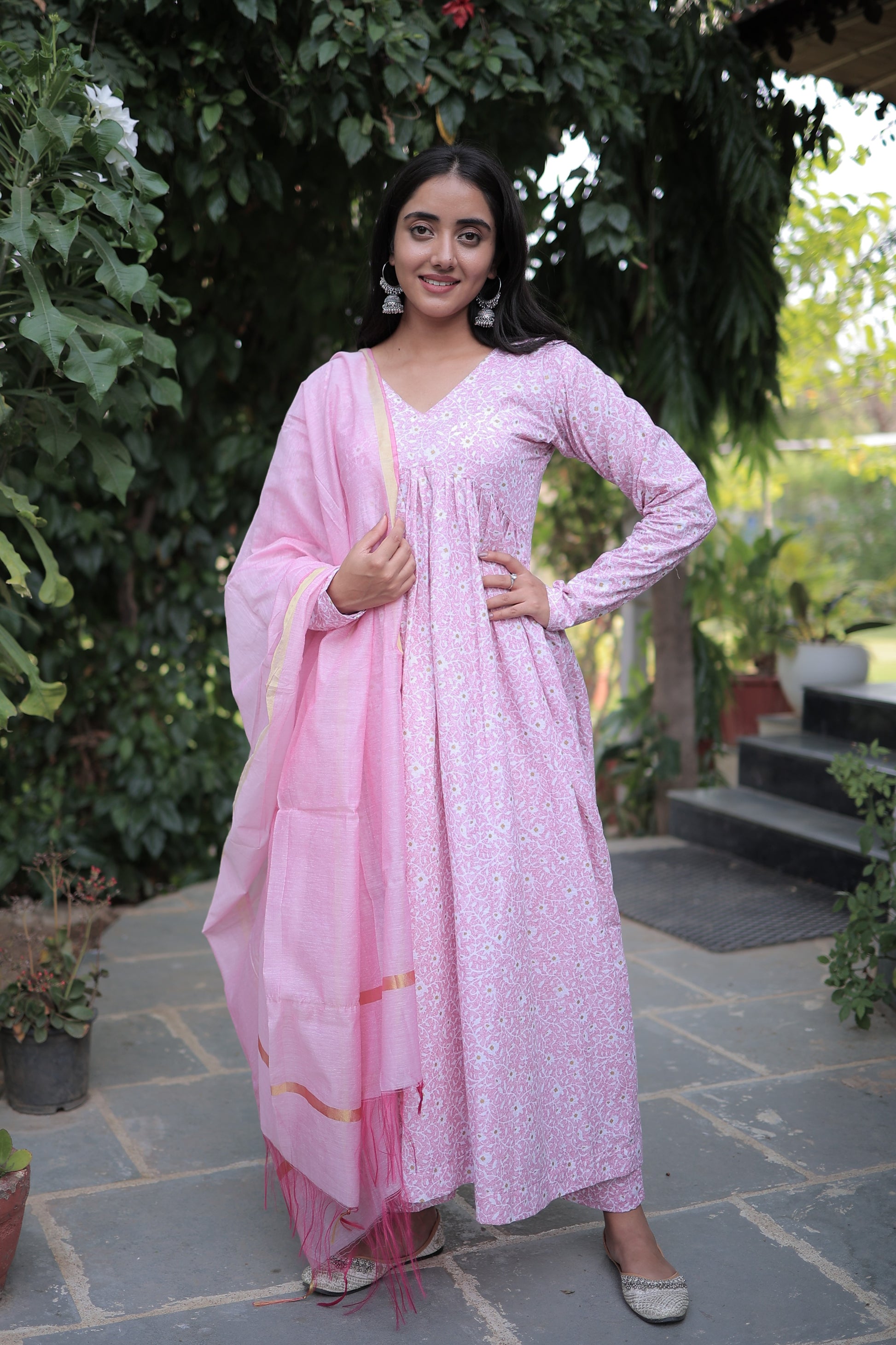Effortlessly chic and beautifully crafted, our NAZAKAT suit set is a must-have for any fashion-forward wardrobe. Made from soft cotton in a stunning pink color, this ethnic wear features delicate white floral details that add a touch of femininity. Embrace your inner style with this playful and elegant piece!