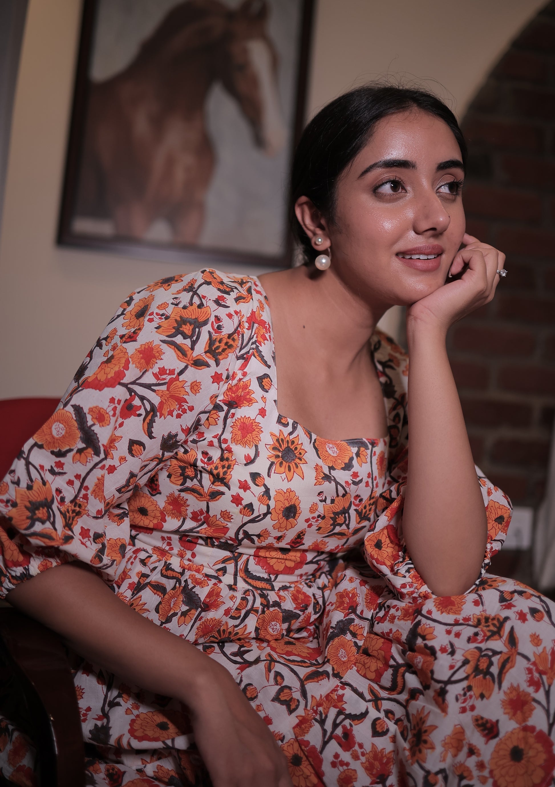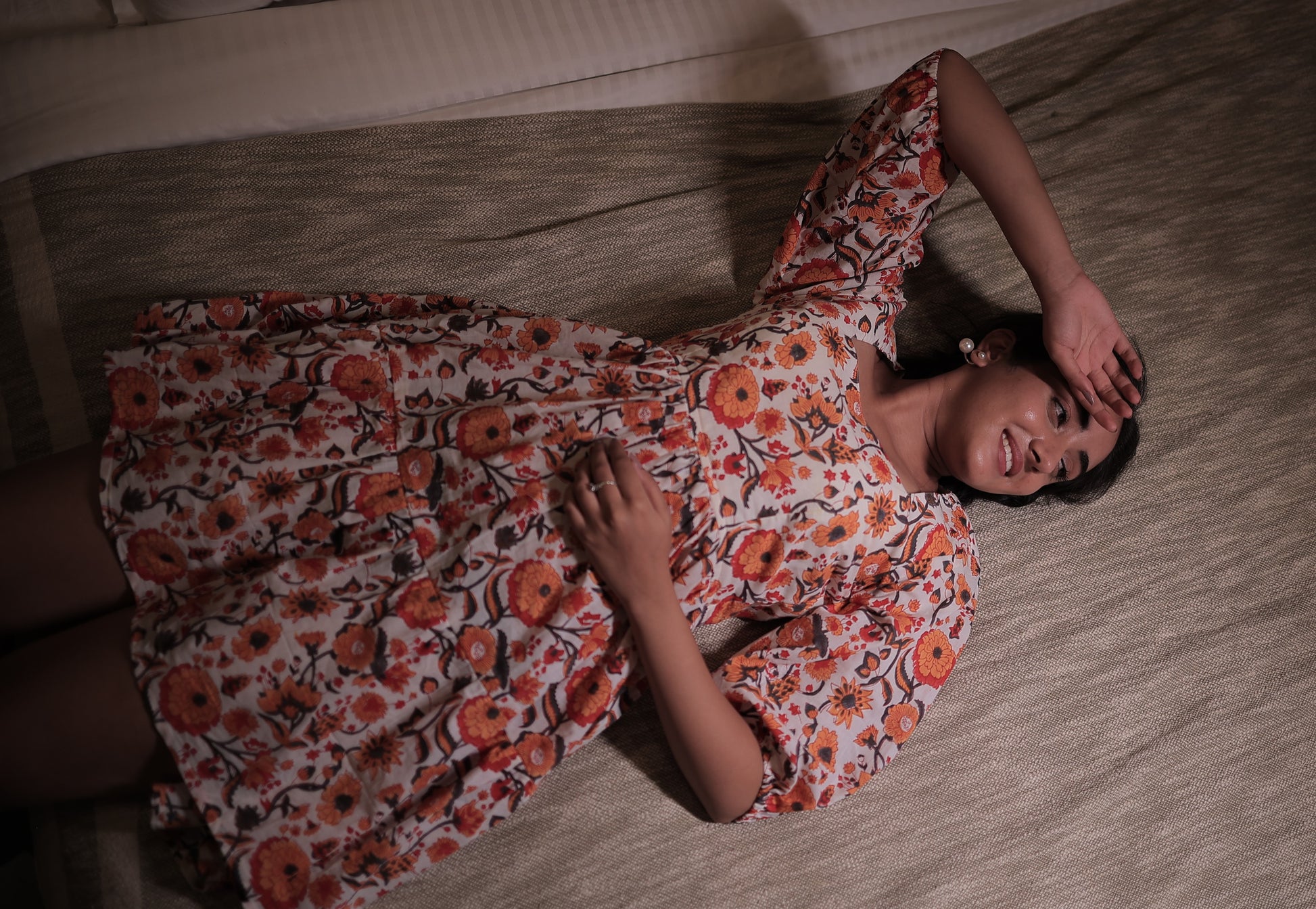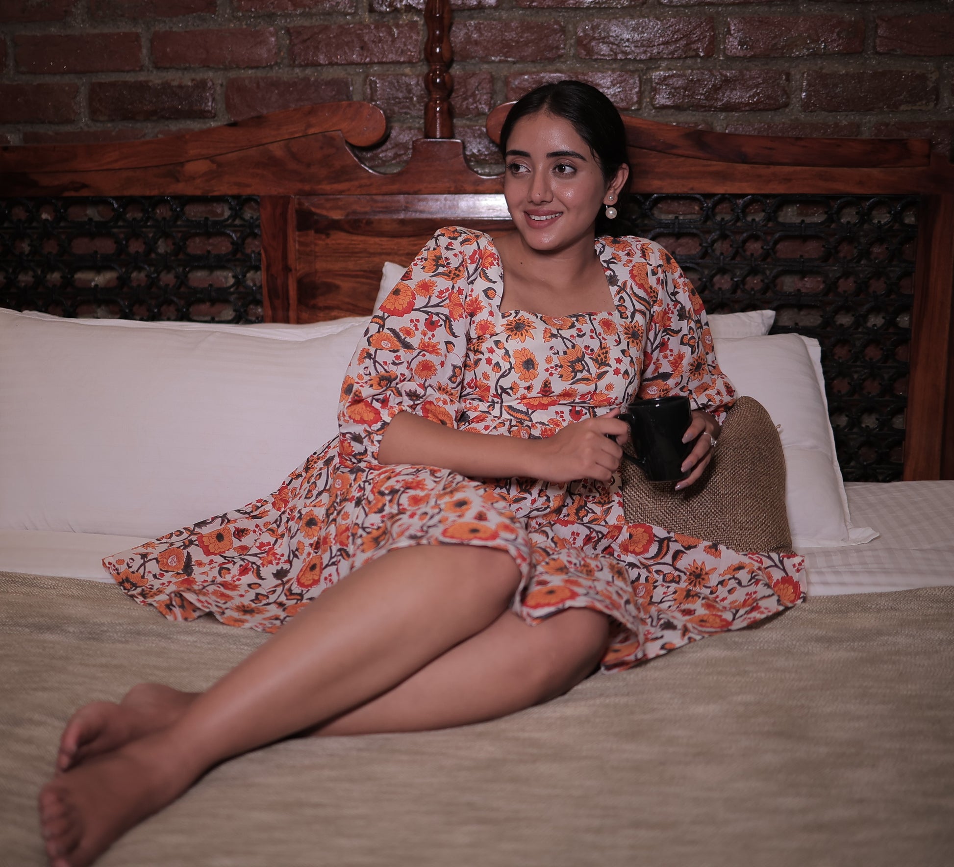 Unleash your playful side with the ARAJKARO TIYA Short Dress. This white one piece features a bold orange floral design and is perfect for all your fun and stylish adventures. With its comfortable fit and intricate details, this dress will add a touch of quirkiness to your wardrobe.