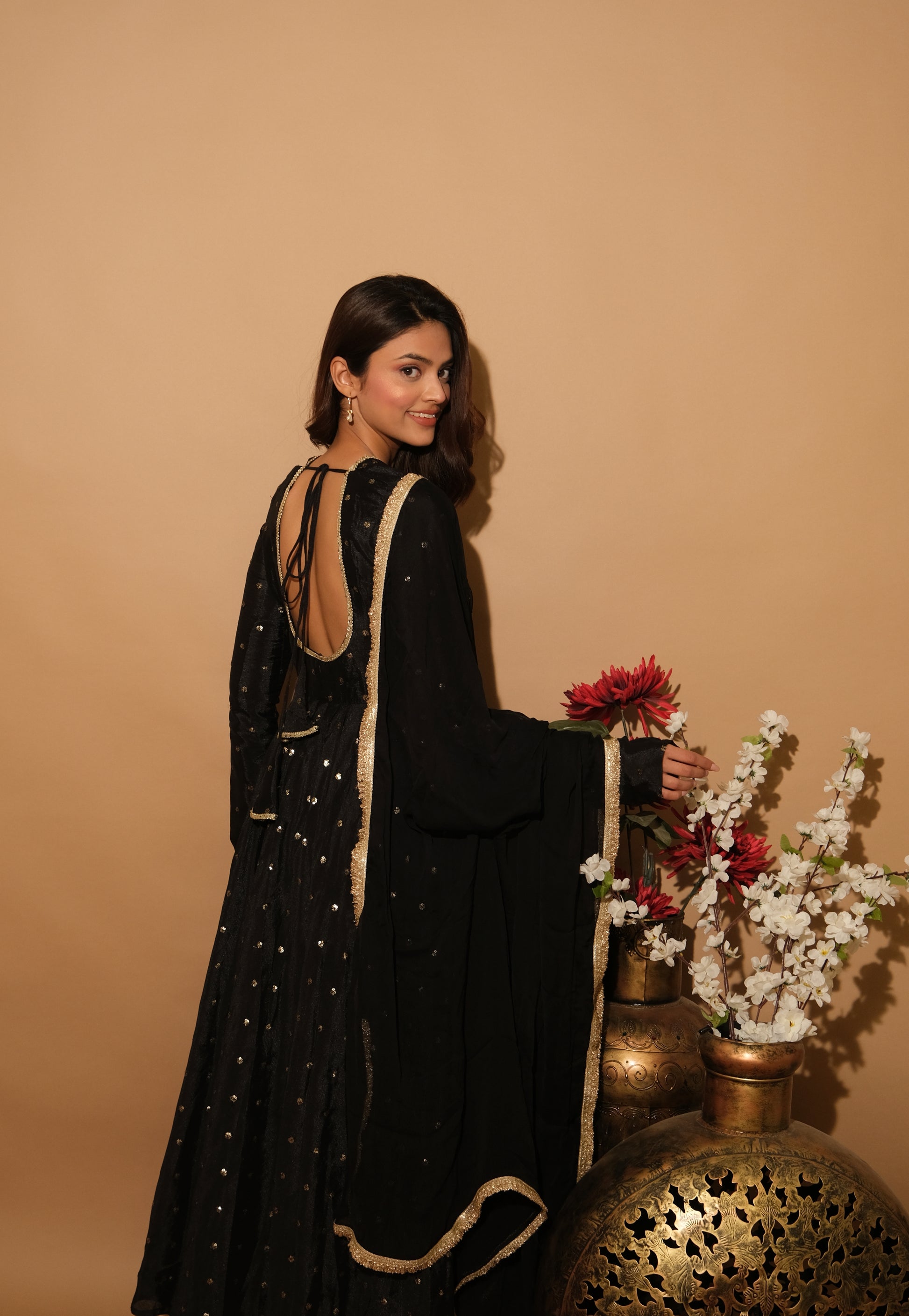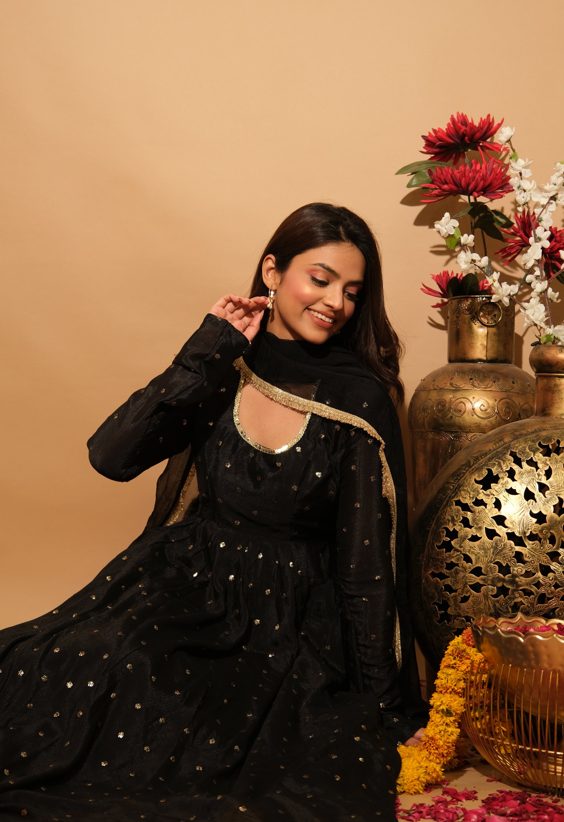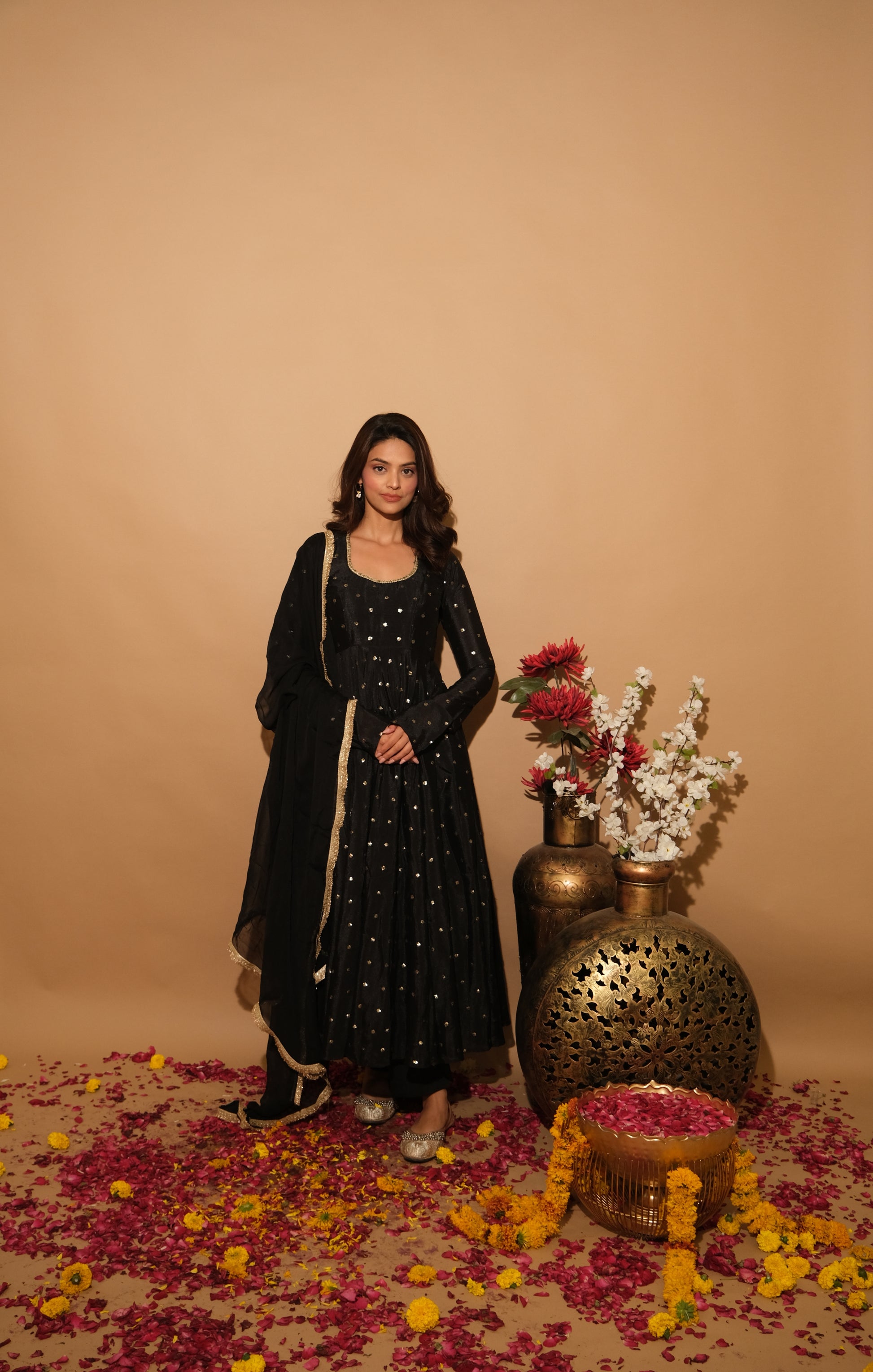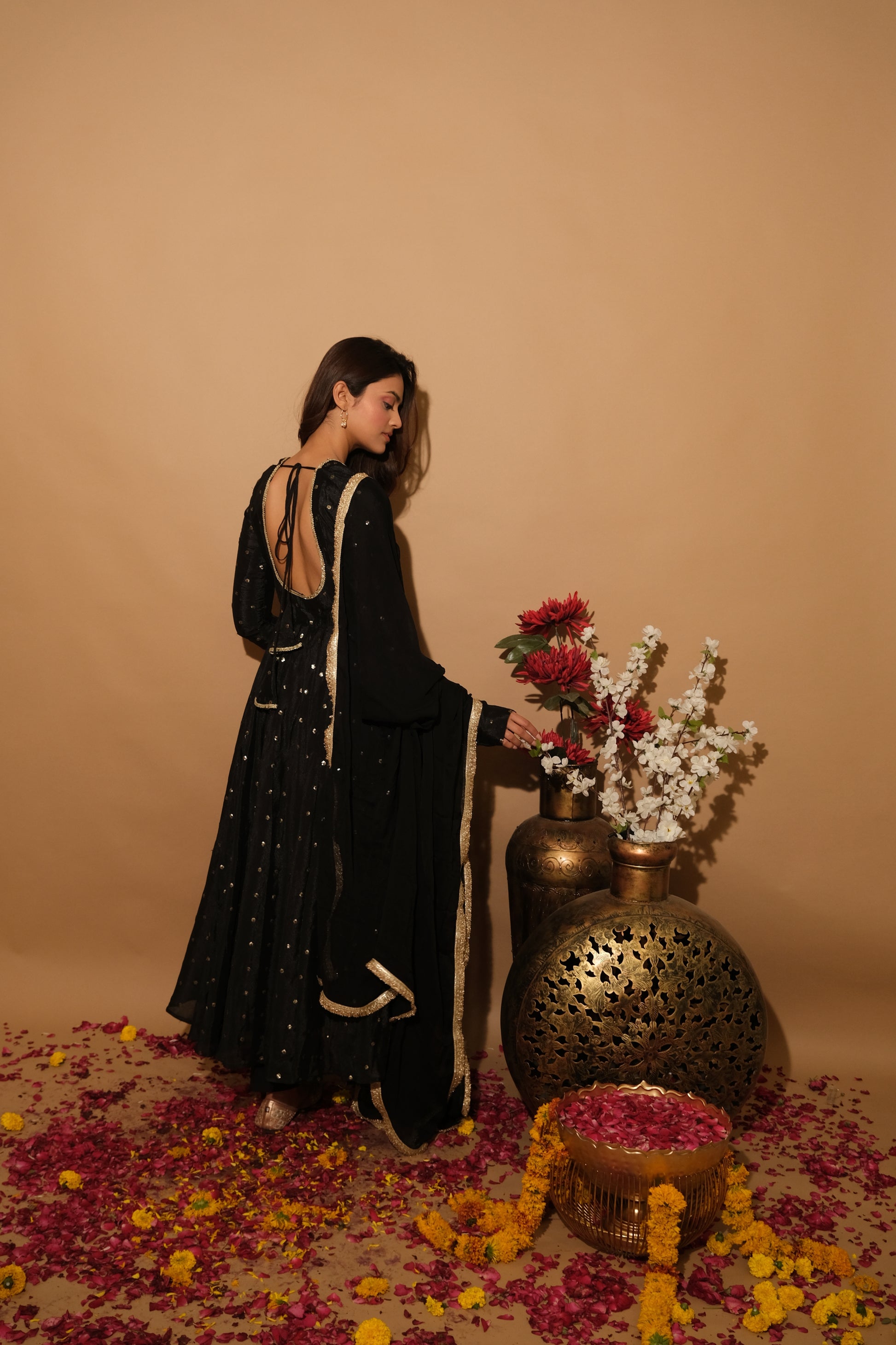 Luxurious velvet meets bold design in Velmira. This ensemble offers plush comfort and dramatic elegance, perfect for winter weddings and glamorous parties.