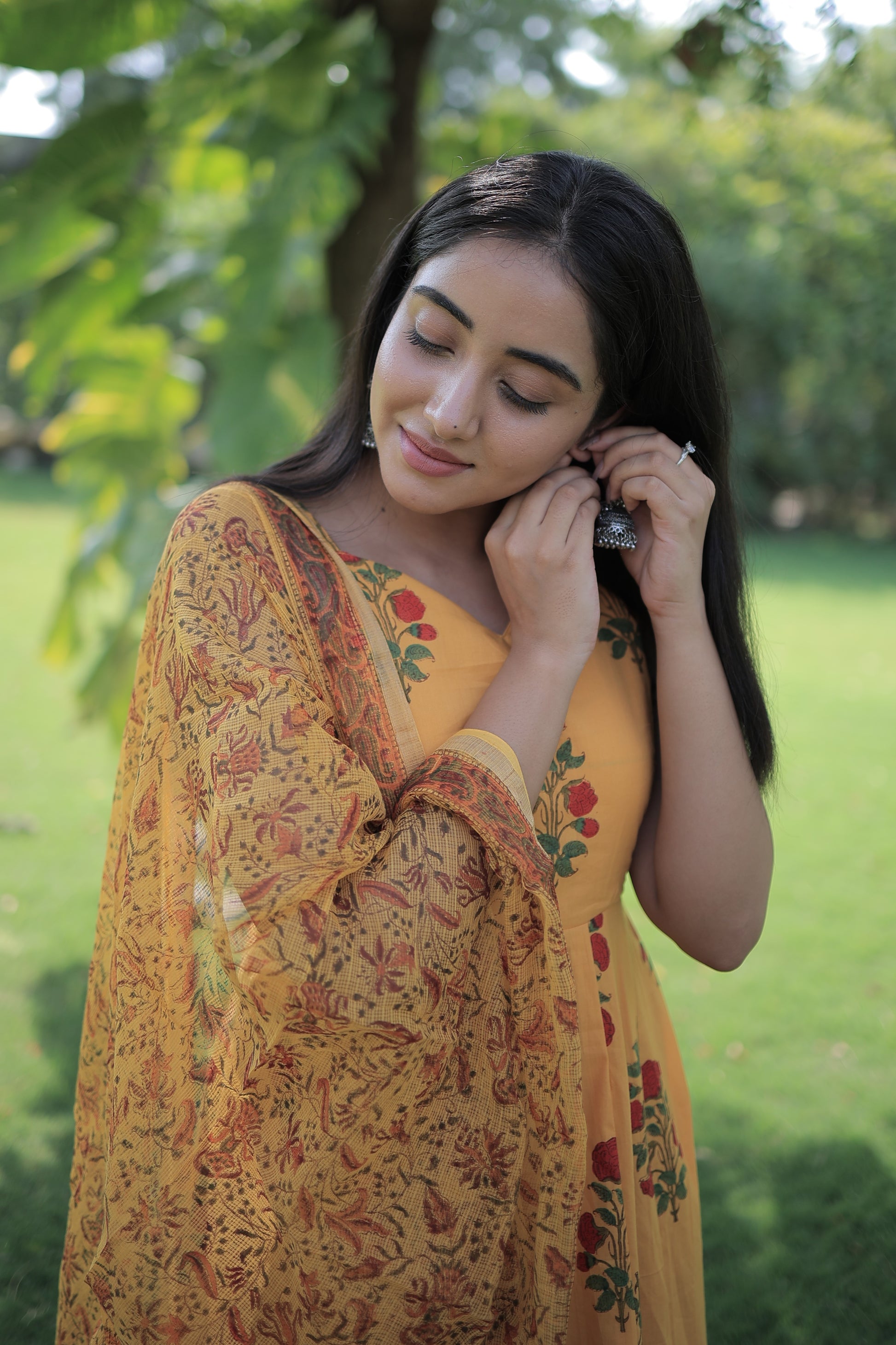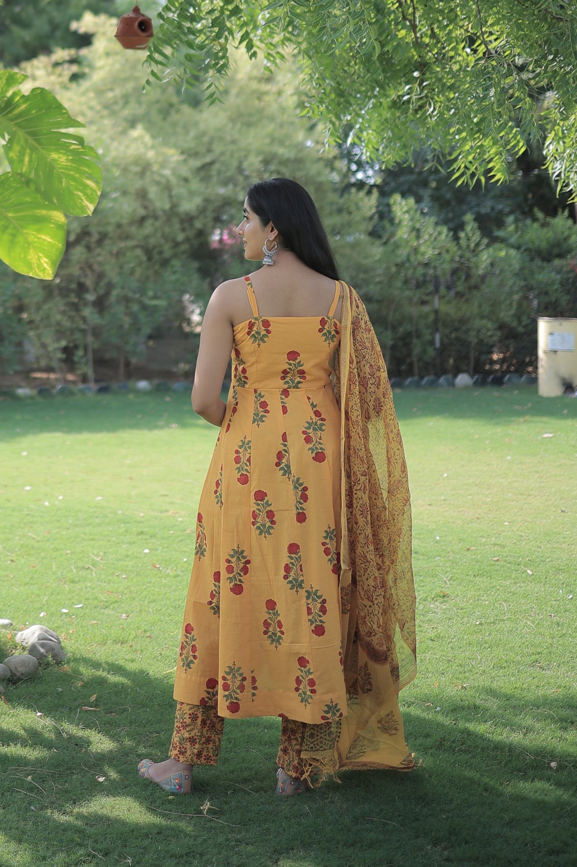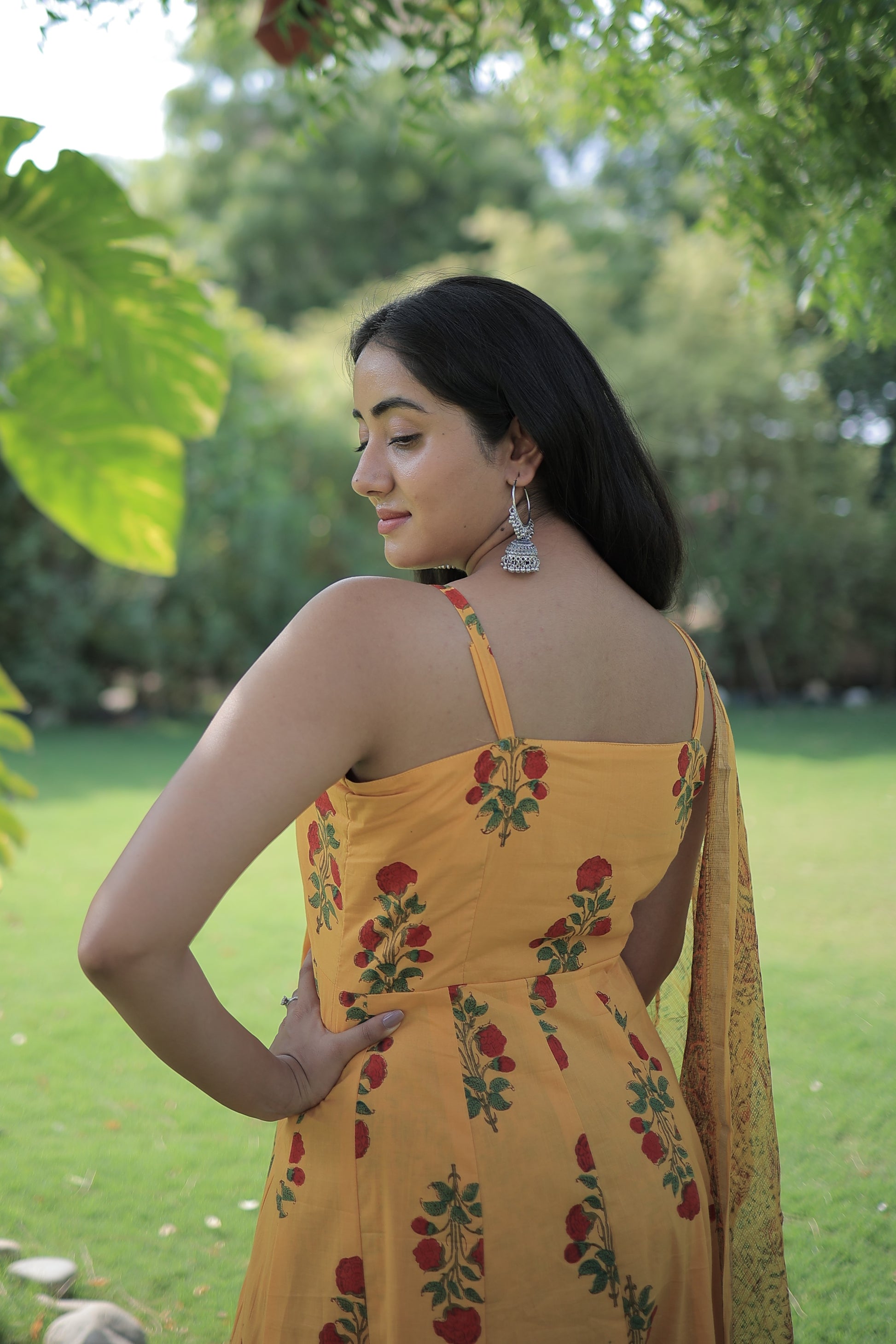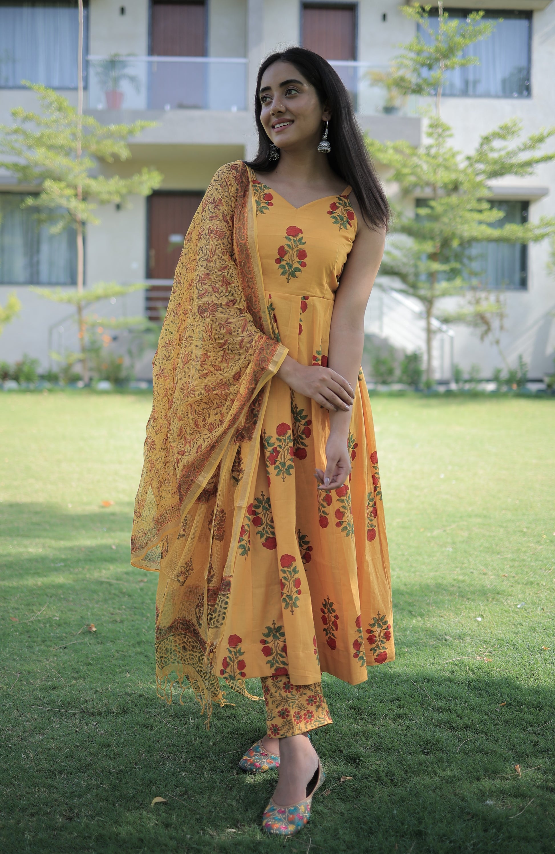 Elevate your style with the ARAJKARO ZOYA COTTON SUIT SET. Featuring a stunning red rose print on a vibrant yellow fabric, this ethnic wear exudes elegance and beauty. Crafted from high-quality cotton, it offers both comfort and sophistication. Perfect for any occasion, make a statement with this gorgeous suit set.